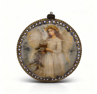 Cada medallón lleva la imagen del Ángel que cuida al niño mientras duerme. Está hecho a mano, con ternura, oración y belleza, para tener siempre presente al mejor amigo que cualquiera de nosotros puede tener: su Ángel de la Guarda. Para colgar en la cuna, en el carrito o en cualquier rincón que quieras convertir en sagrado.